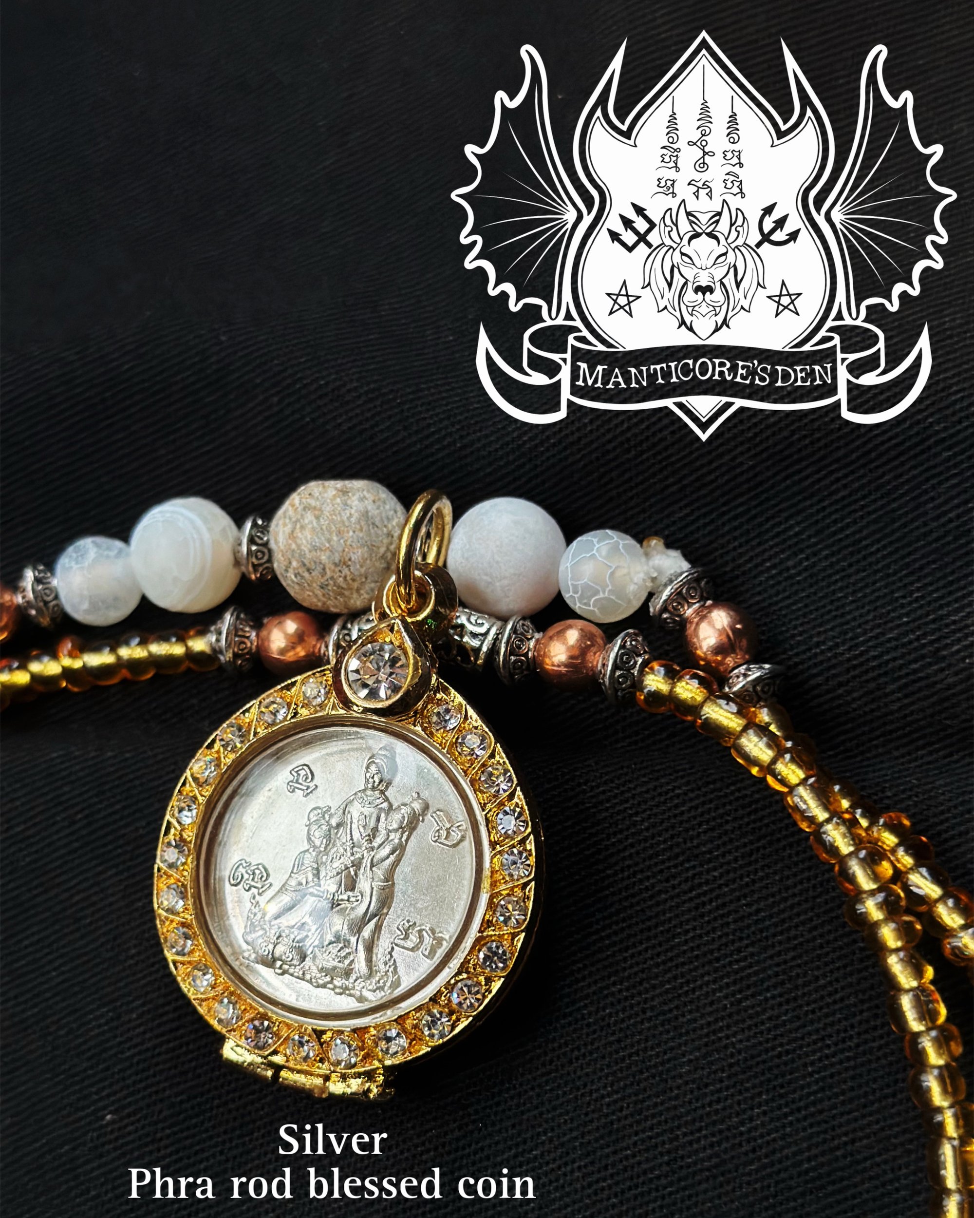 Silver Phra Rod Blessed Coin Necklace – Hand Beaded by Gary Noriyuki